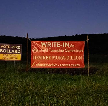 This article is based solely on publicly available information, including the New Jersey Election Law Enforcement Commission (ELEC) database as of October 8, 2025, and publicly displayed campaign materials observed within Mansfield Township. All photos and records cited are verifiable public documents. The purpose of this article is to promote transparency and informed civic participation. It does not allege, imply, or assert that any individual or campaign has violated state or federal law. All statements reflect the author’s personal opinions and interpretations of publicly available facts, expressed in the capacity of a private citizen and not as an elected official or representative of the Township of Mansfield. Readers are encouraged to verify all information through official state records at https://www.elec.nj.gov independently.